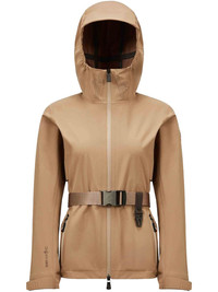 Fex hooded jacket Highlights - Camel brown - Front two-way zip fastening - Two side zip-fastening pockets - Slouchy hood - Belted waist Imported Composition Lining: Polyamide 85%, Elastane 15% Outer: Polyamide 81%, Elastane 19%