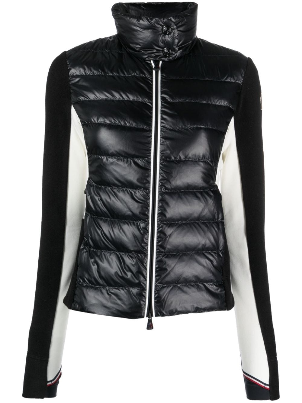 fleece-panelled puffer jacket Moncler Grenoble's outerwear prowess is on display with this puffer jacket. Arriving in a two-tone colourway, it boasts fleece sleeves alongside the feather-down insulated body while a logo applique on the sleeve lends a recognisable appeal. Highlights - Black/white - Feather down - Padded design - Quilted - High neck - Front zip fastening - Fleece sleeves - Applique logo - Two side zip-fastening pockets - Straight hem Imported Composition Lining: Feather Down 100%, Polyamide 100% Outer: Polyamide 100% SIZE & FIT Model measurements Height 5 ft 10 in(1.78 m) Bust/Chest 32.67 in(83 cm) Hips 35.43 in(90 cm) Waist 23.22 in(59 cm) FittingInformation Designed for a relaxed fit, this piece allows for comfort and movement when worn Made from a midweight fabric This piece fits true to size – take your usual size Washing instructions Hand Wash