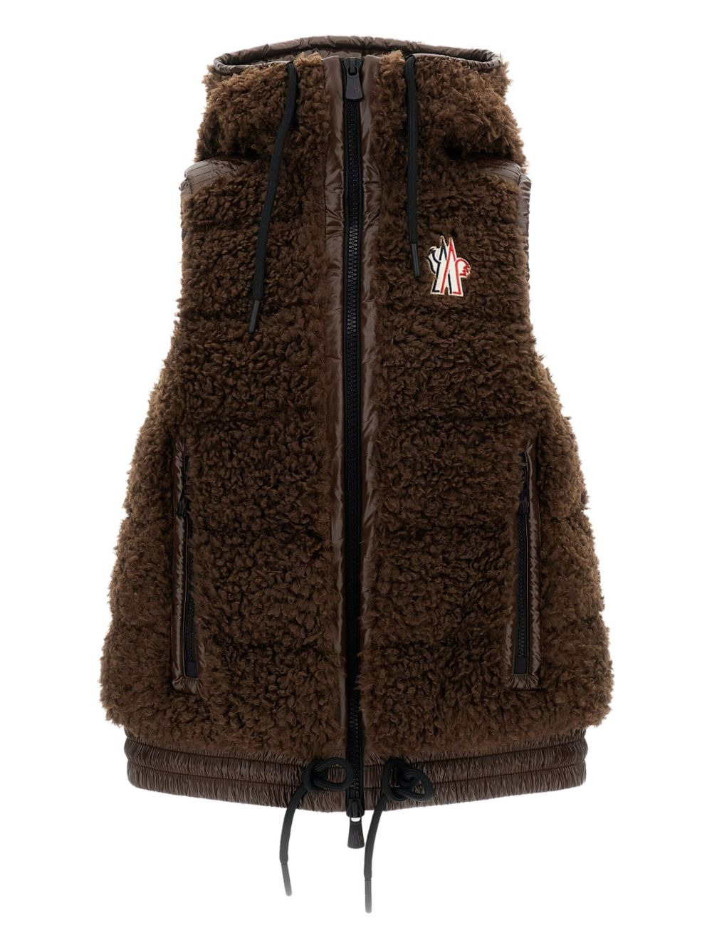 hooded fleece vest Highlights - Brown - Fleece texture - Front zip fastening - Drawstring waist - Side pockets - Logo patch Imported Composition Polyester 100% Washing instructions Read Manufacturer Guidelines