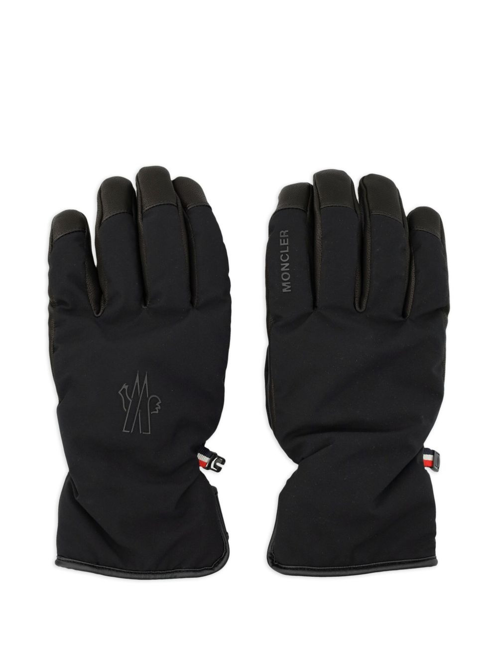 logo gloves Highlights - Black - Logo detail - Leather trim - Elasticated cuff - Adjustable strap - Pull tab Imported Composition Polyester 53%, Elastomultiester 47% Washing instructions Read Manufacturer Guidelines