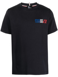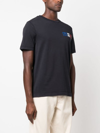 Mountain logo-print cotton T-Shirt Highlights - Navy blue - Cotton - Logo print at the chest - Number print to the rear - Crew neck - Short sleeves - Short side slits - Straight hem Imported Composition Cotton 100% SIZE & FIT Measurement CHEST 39.37 in(100 cm) LENGTH 25.59 in(65 cm) Washing instructions Machine Wash