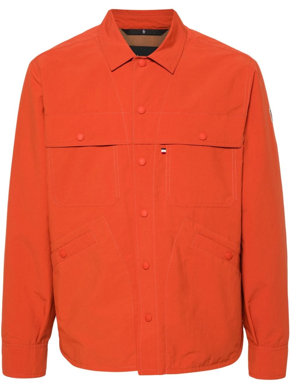 Nax shirt jacket Moncler Grenoble's Nax shirt jacket is finished with the signature logo patch on the sleeve. Highlights - Orange - Shell - Logo patch at the sleeve - Logo-engraved buttons - Logo patch to the rear - Logo tag - Pleat detailing - Classic collar - Storm flap - Long sleeves - Buttoned cuffs - Two chest patch pockets - Two front patch pockets - Curved hem - Mesh lining - Front press-stud fastening Made in Italy Composition Outer: Polyester 100% Lining: Polyamide 100% SIZE & FIT Model measurements Height 6 ft 2 in(1.87 m) Bust/Chest 36.22 in(92 cm) Hips 37 in(94 cm) Waist 27.95 in(71 cm) FittingInformation Designed to be unstructured, offering a loose fit throughout Made from a midweight non-stretch fabric This piece fits true to size – take your usual size
