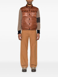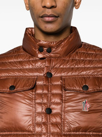 Ollon ripstop down gilet Highlights - Chocolate brown - Down filling - Ripstop texture - High-shine finish - Logo patch at the chest - Water-repellent - Windproof - Quilted - Padded design - Mock neck - Front press-stud and zip fastening - Sleeveless - Two side zip-fastening pockets - Elasticated hem - Authenticity qr code Imported Composition Lining: Down 100%, Polyamide 100%, Polyester 100% Outer: Polyamide 100% SIZE & FIT Model measurements Height 6 ft 2 in(1.87 m) Bust/Chest 36.22 in(92 cm) Hips 37 in(94 cm) Waist 27.95 in(71 cm) FittingInformation Designed for a slim fit, offering a comfortable fit that sits just away from the body Made from a padded non-stretch fabric, giving it no natural elasticity This piece fits true to size – take your usual size Washing instructions Hand Wash