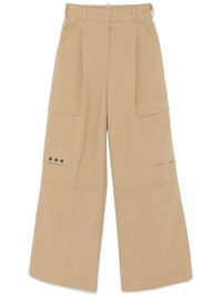 pleat-detail trousers Highlights - Sand beige - Front press-stud and zip fastening - Two side slash pockets - Two side cargo pockets - Two front patch pockets Imported Composition Polyester 100% SIZE & FIT Model measurements Height 5 ft 10 in(1.78 m) Bust/Chest 33.85 in(86 cm) Hips 36.61 in(93 cm) Waist 26.77 in(68 cm) FittingInformation Designed with a wide-leg cut, these trousers allow for a close fit at the waist and offer a loose and roomy fit over the leg Made from a midweight non-stretch fabric