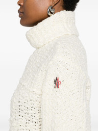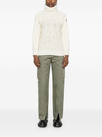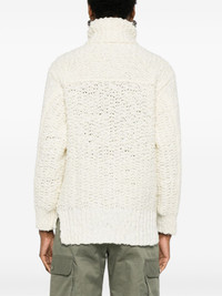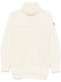 polo-neck sweater Highlights - Cream white - Virgin wool blend - Chunky knit - Polo neck - Long sleeves - Logo patch at the sleeve - Ribbed cuffs - Short side slits - Ribbed high-low hem Made in Italy Composition Virgin Wool 53%, Polyamide 30%, Viscose 17% SIZE & FIT Model measurements Height 5 ft 11 in(1.8 m) Bust/Chest 31.49 in(80 cm) Hips 36.61 in(93 cm) Waist 24.4 in(62 cm) FittingInformation Designed for a relaxed fit, this piece allows for comfort and movement when worn Made with a midweight knit, this piece offers some stretch