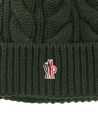 pompom-detail beanie hat Highlights - Khaki - Virgin wool-cashmere blend - Cable knit - Pompom detail - Logo patch to the front - Ribbed-knit turn-up brim Made in Italy Composition Lamb Fur 100%, Virgin Wool 70%, Cashmere 30% Washing instructions Dry Clean Only