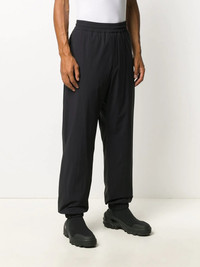 pull-on cuffes track trousers Highlights - Black - Elasticated waistband - Two side zip-fastening pockets - Elasticated cuffs Imported Composition Outer: PVC 100%, Polyamide 84%, Spandex/Elastane 16% Lining: Polyester 100% SIZE & FIT Model measurements Height 6 ft 2 in(1.87 m) Bust/Chest 38.18 in(97 cm) Hips 36.61 in(93 cm) Waist 29.13 in(74 cm) FittingInformation This piece fits true to size. We recommend you get your regular size Designed to be loose over the leg with a fitted waist and hem Made with a mid-weight fabric Washing instructions Machine Wash