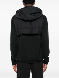 quilted-panel hooded cardigan A hybrid design, this black Moncler Grenoble jacket combines aspects of cardigans and padded outerwear into one. It boasts a knitted construction juxtaposed with a quilted front injected with down-feather filling, lending an insulating effect. A drawstring hood helps protect, whilst two side zip-fastening pockets allow essentials to be safely stowed away. Meanwhile, branded detailing at the chest and sleeve adds an unmistakable feel. Highlights - Black - Down-feather filling - Quilted - Logo patch at the chest - Embroidered logo at the sleeve - Padded panels - Drawstring hood - Front two-way zip fastening - Long sleeves - Two side zip-fastening pockets - Straight hem Imported Composition Outer: Nylon 100% Lining: Polyester 100%, Polyamide 100%, Goose Down 90%, Goose Feather 10% SIZE & FIT Model measurements Height 6 ft 0 in(1.84 m) Bust/Chest 36.22 in(92 cm) Hips 35.43 in(90 cm) Waist 26.77 in(68 cm) FittingInformation Designed for a regular fit, allowing for a comfortably loose fit throughout the body Made from a midweight fabric This piece fits true to size – take your usual size Washing instructions Hand Wash