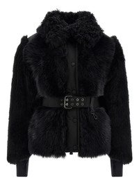 Valdivian shearling belted-waist faux-fur jacket Highlights - Black - Faux-fur - Removable belt - Windproof gaiter sleeves - Logo patch applique - Snap button closure Made in Italy Composition Outer: Polyester 100% Lining: Polyamide 100%, Down 90%, Feather 10% Washing instructions Read Manufacturer Guidelines