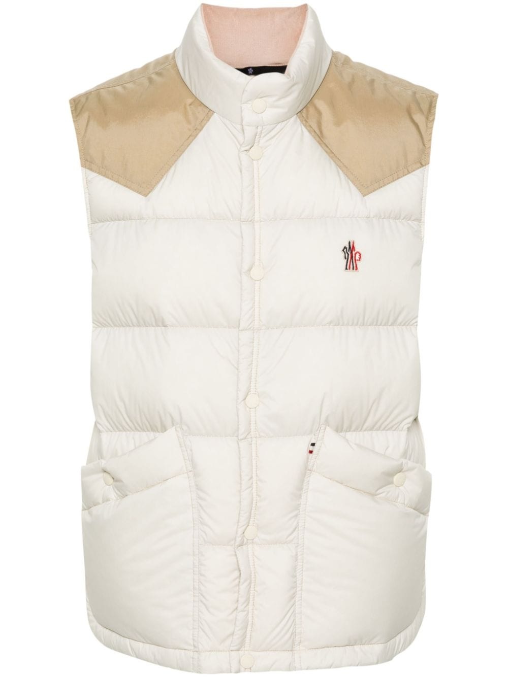 Veny quilted gilet Moncler Grenoble's Veny gilet is made from signature longue saison, a water-repellent nylon fabric. It's fitted with practical pockets and has panelled details at the shoulders. Highlights - Cream/beige - Down-feather filling - Padded design - Water-repellent - Quilted - Colour-block panelled design - Contrast stitching - Stand-up collar - Front press-stud fastening - Canvas yoke - Sleeveless - Logo patch at the chest - Two front patch pockets - Short side slits - Straight hem - Contrast lining Imported Composition Polyamide 100%, Cotton 100% Lining: Feather Down 100% SIZE & FIT Model measurements Height 6 ft 1 in(1.85 m) Bust/Chest 36.22 in(92 cm) Hips 36.22 in(92 cm) Waist 27.55 in(70 cm) FittingInformation Designed for a regular fit, allowing for a comfortably loose fit throughout the body Made from a padded non-stretch fabric, giving it no natural elasticity This piece fits true to size – take your usual size Washing instructions Hand Wash