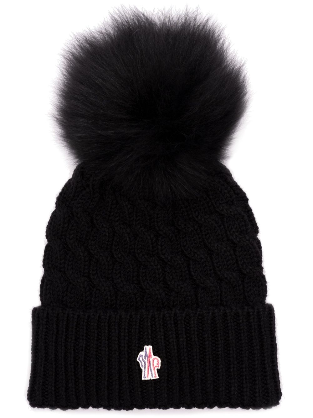 wool beanie Highlights - Black - Wool - Cable knit - Pompom detail - Applique logo - Turn-up brim Made in Italy Composition Wool 100% Washing instructions Read Manufacturer Guidelines