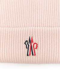 wool beanie hat Highlights - Light pink - Virgin wool - Ribbed knit - Round crown - Turn-up brim - Embroidered logo to the front - Unlined Made in Italy Composition Outer: Virgin Wool 100% Lining: Virgin Wool 100% Washing instructions Dry Clean Only