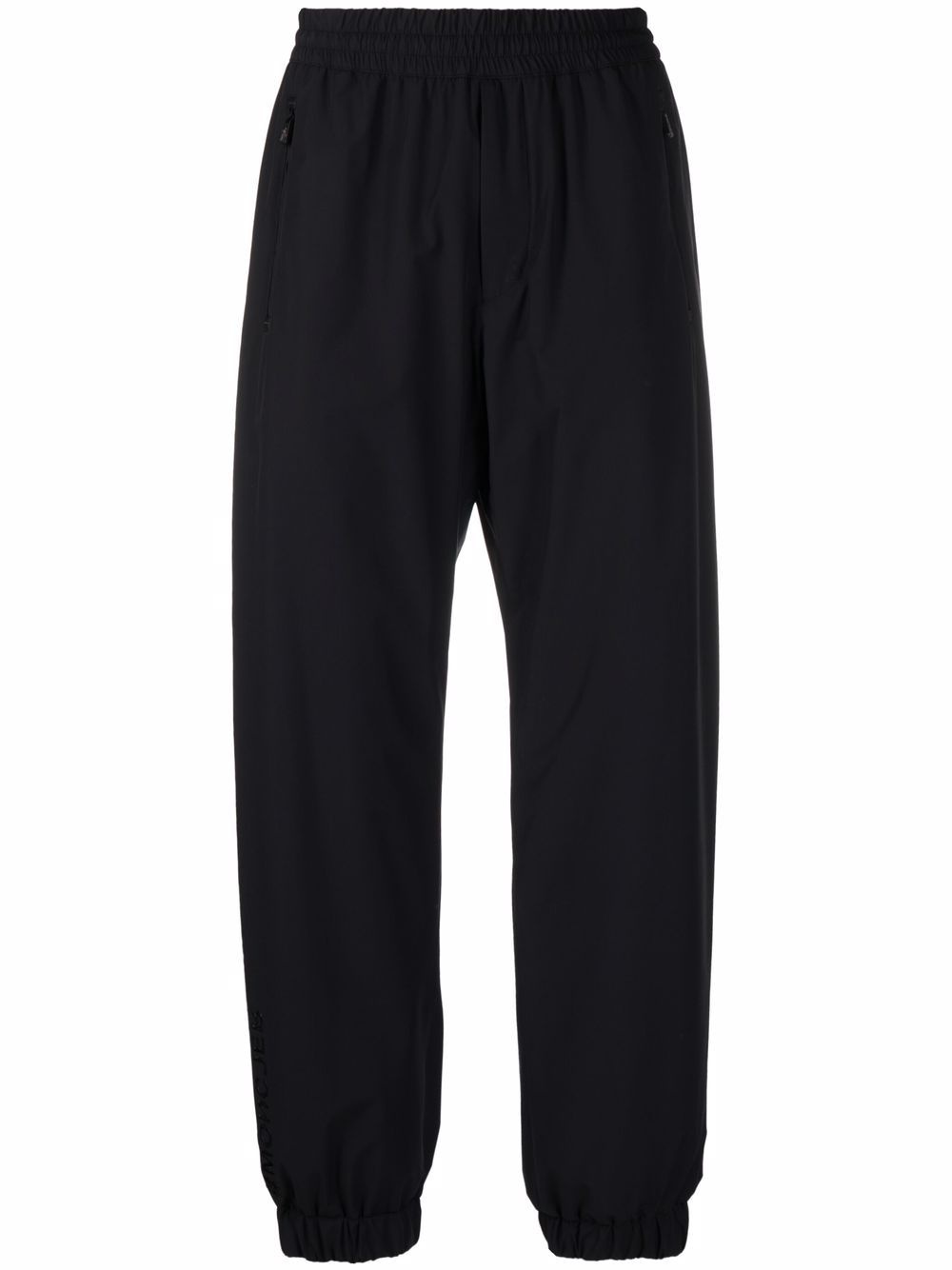 zip-fastening compartment trousers black tonal design elasticated waistband two side zip-fastening pockets elasticated cuffs logo patch to the rear zip-fastening compartment Imported Composition Outer: Polyamide 84%, Spandex/Elastane 16% Lining: Polyamide 100%, Polyester 100% SIZE & FIT Model measurements Height 6 ft 1 in(1.85 m) Bust/Chest 37.79 in(96 cm) Hips 37.4 in(95 cm) Waist 30.7 in(78 cm) FittingInformation This piece fits true to size. We recommend you get your regular size Designed to be loose over the leg with a fitted waist and hem Made with a mid-weight fabric Washing instructions Machine Wash