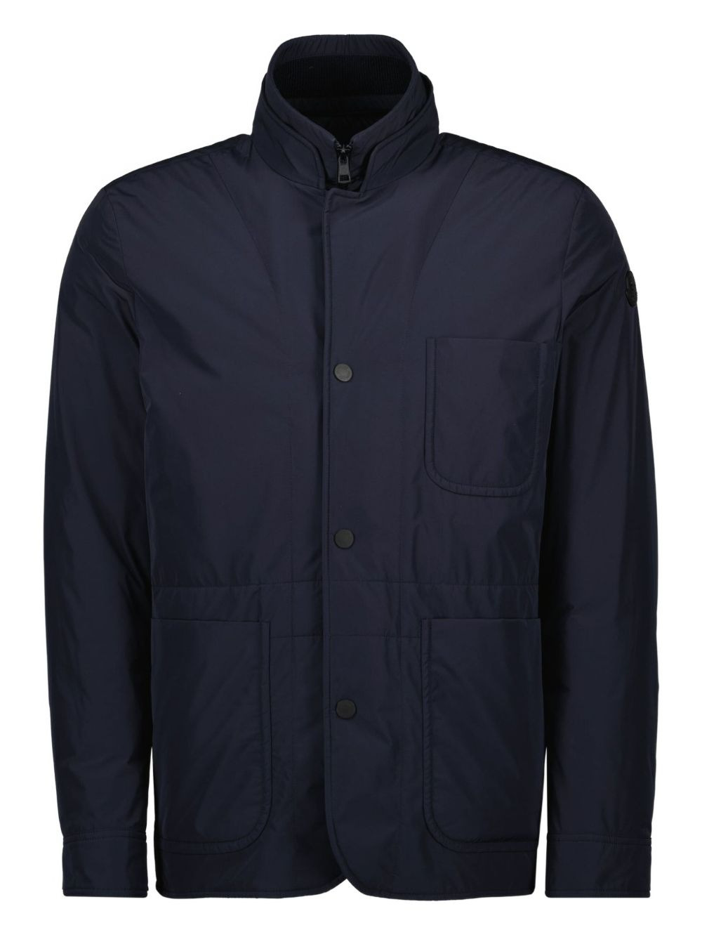 high-neck buttoned jacket Highlights - Navy blue - Aquaflect shell - Down padding - Buttoned cuffs - Patch pockets - Logo patch Imported Composition Lining: Polyester 100%, Down 90%, Feather 10% Outer: Polyester 100% Washing instructions Read Manufacturer Guidelines