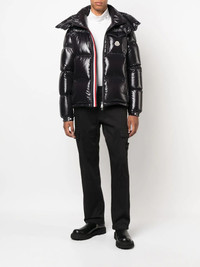 high-shine padded jacket Highlights - Black - Feather down - High-shine finish - Padded design - Logo patch at the chest - Classic hood - Chest patch pocket - Long sleeves - Concealed front fastening Imported Composition Lining: Feather Down 100%, Polyamide 100% Outer: Polyamide 100% SIZE & FIT Model measurements Height 6 ft 2 in(1.89 m) Bust/Chest 35.82 in(91 cm) Hips 37.99 in(96.5 cm) Waist 32.28 in(82 cm) Measurement CHEST 44.88 in(114 cm) SLEEVE LENGTH 25.19 in(64 cm) Shoulder Width 18.11 in(46 cm) FittingInformation Designed for a relaxed fit, this piece allows for comfort and movement when worn The internal drawstring at the hem allows for fitted preferences Made from a padded non-stretch fabric, giving it no natural elasticity This piece fits true to size – take your usual size