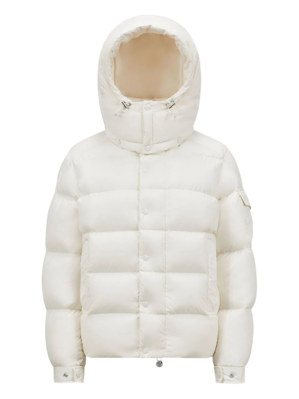 hooded puffer jacket Highlights - White - Quilted design - Snap button fastening - Hooded neckline - Long sleeves Imported Composition Lining: Polyester 100%, Down 90%, Feather 10% Outer: Polyester 100% Washing instructions Read Manufacturer Guidelines