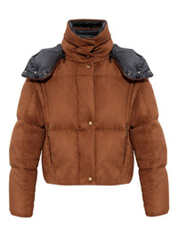 hooded puffer jacket Highlights - Brown - Quilted design - Hooded neckline - Snap button fastening - Cropped length Made in Italy Composition Polyester 100% Washing instructions Read Manufacturer Guidelines
