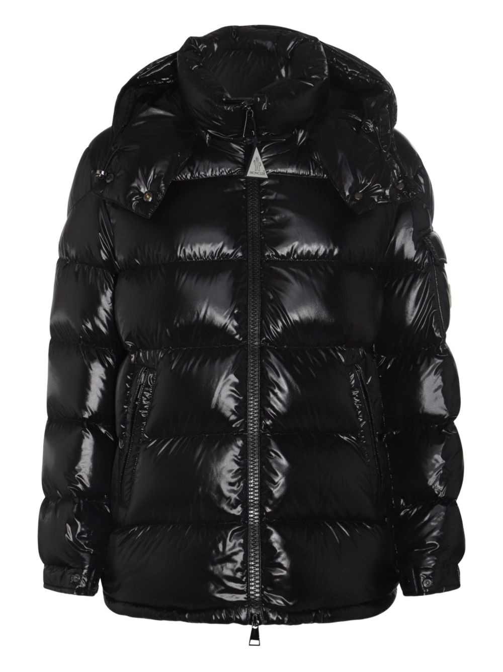 hooded puffer jacket Standing as one of Moncler's signature silhouettes, the Maire jacket showcases the label's impeccable understanding of functional outerwear. Appearing here in its tonal black design, the jacket has an understated and timeless design, that is elevated by its feather-down padding for added warmth. Highlights - Black - Quilted design - Concealed zip fastening - Snap button fastening - Attached hood Imported Composition Outer: Polyamide 100% Lining: Polyamide 100%, Down 90%, Feather 10% SIZE & FIT Measurement LENGTH 27.95 in(71 cm) SLEEVE LENGTH 23.62 in(60 cm)
