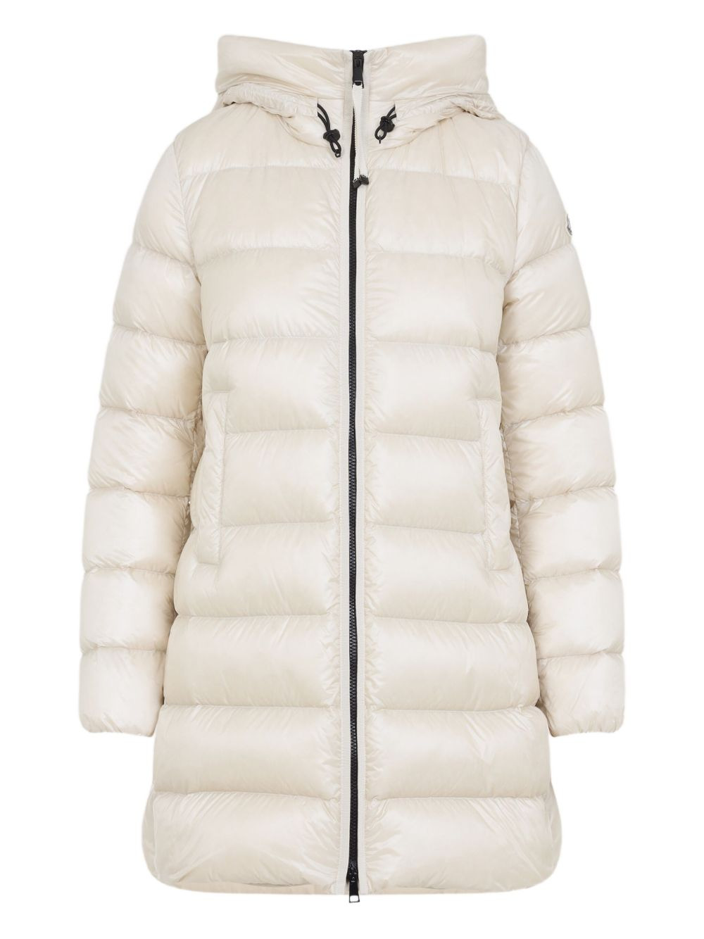 hooded quilted coat Highlights - Light beige - Quilted design - Hooded neckline - Zip fastening - Long sleeves - Straight hemline Imported Composition Lining: Down 90%, Feather 10% Outer: Polyamide 100% Washing instructions Read Manufacturer Guidelines