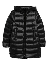 hooded quilted coat Highlights - Black - Quilted design - Hooded neckline - Long sleeves - Zip fastening - Straight hem Imported Composition Outer: Polyamide 100% Lining: Polyamide 100%, Goose Down 90%, Goose Feather 10% Washing instructions Hand Wash