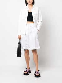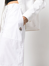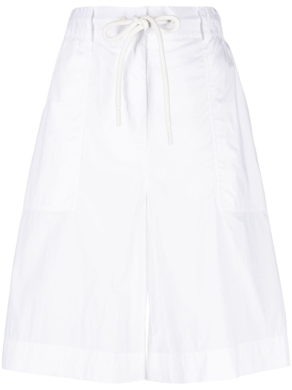 knee-length drawstring shorts Moncler displays a utilitarian style in these knee-length shorts. Crafted from a soft cotton blend with a wide-leg cut, the pair is finished with an elasticated drawstring waistband for ensured comfort. Highlights - White - Cotton blend - Elasticated drawstring waistband - Belt loops - Side slash pocket - Two rear flap pockets - Wide leg - Knee-length Imported Composition Cotton 66%, Polyamide 34% SIZE & FIT Model measurements Height 5 ft 11 in(1.8 m) Bust/Chest 33.07 in(84 cm) Hips 37.4 in(95 cm) Waist 25.19 in(64 cm) Measurement HIPS 39.01 in(99.1 cm) WAIST 29.01 in(73.7 cm) FittingInformation Designed for a loose fit, offering comfort and movement when worn Adjust this piece’s waistband to your preference using the drawstring Made from a lightweight non-stretch fabric This piece fits true to size – take your usual size Washing instructions Machine Wash
