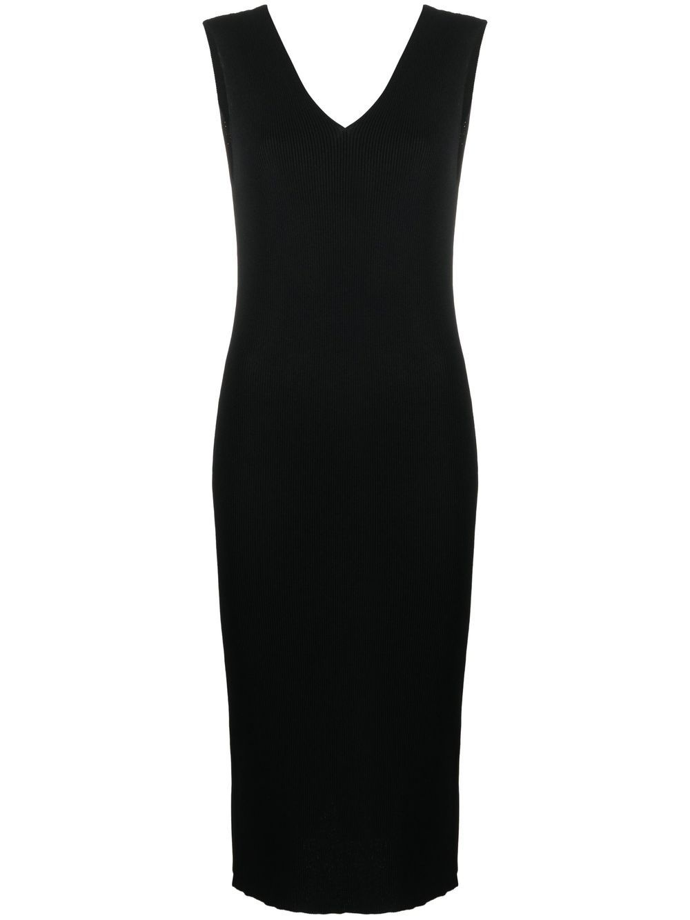 knitted midi dress Understated and timeless, this black Moncler dress is crafted to a V-neck silhouette. It's sleeveless and finishes at the calf. Imported Composition Viscose 76%, Polyamide 24% SIZE & FIT Model measurements Height 5 ft 9 in(1.75 m) Bust/Chest 31.49 in(80 cm) Hips 34.05 in(86.5 cm) Waist 24.21 in(61.5 cm) FittingInformation This piece fits true to size. We recommend you get your regular size Designed for a close fit at the bust, waist and hips Made with a mid-weight fabric Washing instructions Dry Clean Only