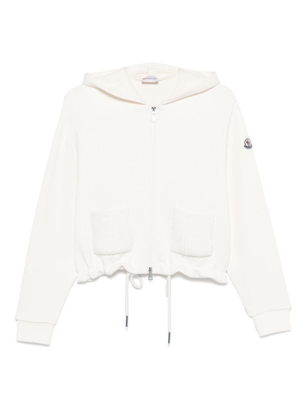 knitted-pocket hoodie Highlights - White - Hooded neckline - Zip fastening - Long sleeves - Ribbed cuffs - Knitted pocket detailing - Drawstring hem Imported Composition Cotton 85%, Polyamide 15% SIZE & FIT Model measurements Height 5 ft 10 in(1.79 m) Bust/Chest 35.43 in(90 cm) Hips 35.03 in(89 cm) Waist 25.19 in(64 cm) FittingInformation Designed for a relaxed fit, this piece allows for comfort and movement when worn The adjustable drawstring means that you can adjust this piece’s fit to suit your comfort and preference Made from a midweight non-stretch fabric, this piece offers minimal elasticity when worn Washing instructions Hand Wash