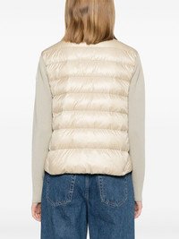knitted-sleeve puffer jacket Highlights - Beige - Virgin wool - Down-feather filling - Padded panels - Quilted - Funnel neck - Long knitted sleeves with ribbed cuffs - Logo patch at the sleeve - Two side zip-fastening pockets - Straight hem - Quilted lining - Front two-way zip fastening Made in Italy Composition Lining: Polyamide 100%, Down 90%, Feather 10% Outer: Virgin Wool 100%, Polyamide 100% SIZE & FIT Model measurements Height 5 ft 9 in(1.75 m) Bust/Chest 31.88 in(81 cm) Hips 34.64 in(88 cm) Waist 24.01 in(61 cm) Measurement SLEEVE LENGTH 25.59 in(65 cm) HIPS 48.03 in(122 cm) LENGTH 25.59 in(65 cm) WAIST 47.24 in(120 cm) FittingInformation Designed to be unstructured, offering a loose fit throughout Made from a padded non-stretch fabric, giving it no natural elasticity Washing instructions Dry Clean Only