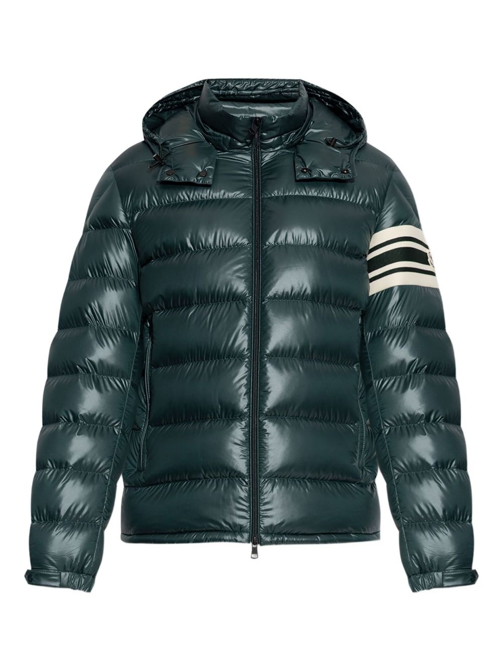 Landre down jacket Highlights - Green - Front zip fastening - Detachable hood - Logo patch at the sleeve - Long sleeves - Two side zip-fastening pockets Imported Composition Outer: Polyester 100% Lining: Down 100%, Polyester 100%, Feather 100%