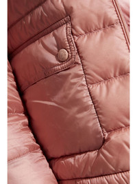 Lans down jacket Highlights - Rose pink - Goose down - Padded design - Quilted - Logo patch at the sleeve - Mock neck - Front two-way zip fastening - Long sleeves - Elasticated cuffs - Two front flap pockets - Elasticated hem Imported Composition Outer: Polyamide 100% Lining: Polyamide 100%, Feather Down 100% SIZE & FIT Measurement BUST 34.64 in(88 cm) LENGTH 20.47 in(52 cm) WAIST 32.28 in(82 cm) SLEEVE LENGTH 23.62 in(60 cm) Shoulder Width 14.96 in(38 cm) Washing instructions Read Manufacturer Guidelines