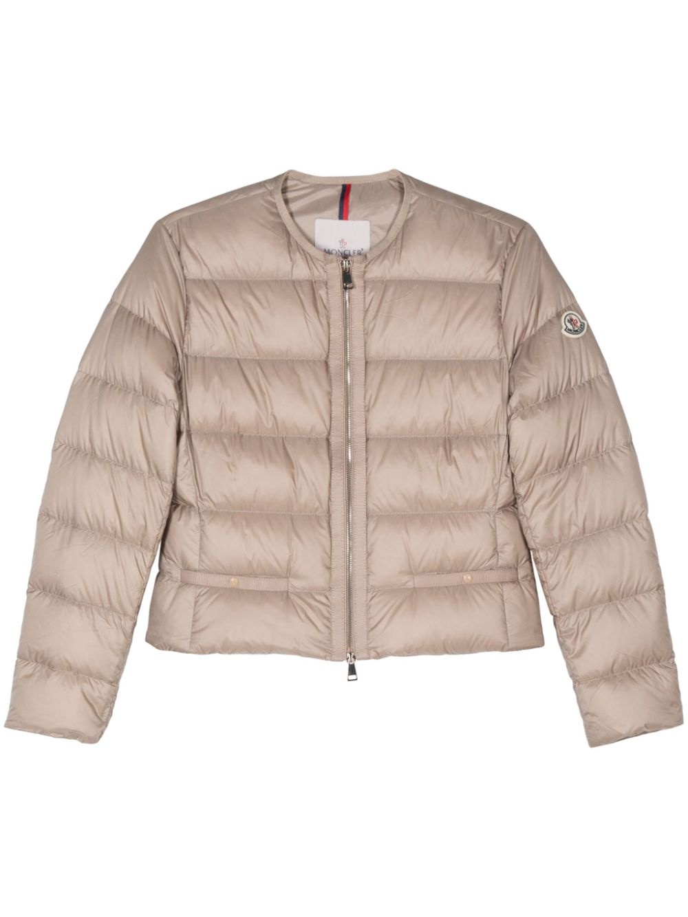 Laurine quilted puffer jacket Highlights - Beige - Feather down - Padded design - Quilted - Logo patch at the sleeve - Grosgrain ribbon trim - Gold-tone hardware - Round neck - Front two-way zip fastening - Long sleeves - Two side stud-fastening pockets - Straight hem - Authenticity qr code Imported Composition Lining: Polyamide 100%, Feather Down 100% Outer: Polyamide 100% SIZE & FIT FittingInformation Designed for a slim fit that sits just away from the body offering a close yet comfortable fit Made from a padded non-stretch fabric, giving it no natural elasticity This piece fits true to size – take your usual size Washing instructions Hand Wash