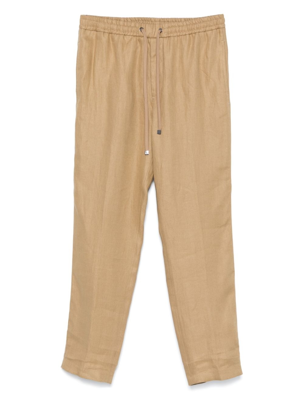 linen track pants Highlights - Beige - Drawstring fastening - Elasticated waistband - Two side inset pockets - Two rear flap pockets Imported Composition Linen/Flax 100%, Calf Leather 100% SIZE & FIT Model measurements Height 6 ft 2 in(1.89 m) Bust/Chest 36.22 in(92 cm) Hips 35.82 in(91 cm) Waist 28.54 in(72.5 cm) FittingInformation Designed for a tapered leg, offering a loose unrestricted fit over the leg with a closer fit towards the ankle The elasticated waist allows for a comfortable fit Made from a midweight non-stretch fabric
