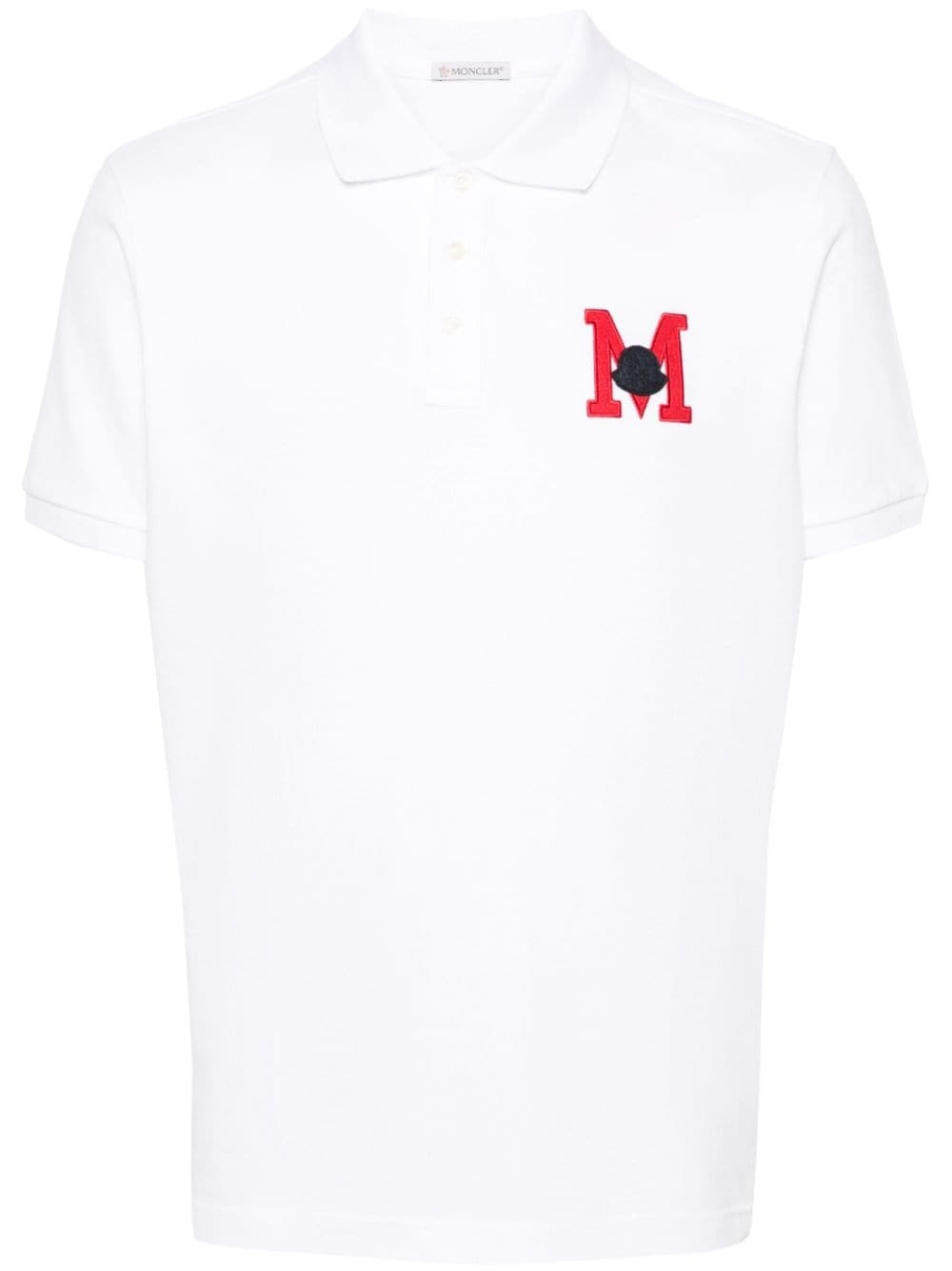 logo-applique polo shirt This white Moncler polo shirt is cut from cotton pique and layered with monogram and logo appliques at the chest so there’s no mistaking its origins. Mother-of-pearl buttons add a refined touch. Highlights - White - Cotton - Pique weave - Polo collar - Applique logo - Short sleeves - Short side slits - Short front button fastening Made in United Kingdom Composition Cotton 100% SIZE & FIT Model measurements Height 6 ft 1 in(1.86 m) Bust/Chest 36.61 in(93 cm) Hips 37 in(94 cm) Waist 28.74 in(73 cm) Measurement CHEST 43.3 in(110 cm) SLEEVE LENGTH 8.66 in(22 cm) LENGTH 27.16 in(69 cm) Shoulder Width 18.11 in(46 cm) Washing instructions Machine Wash