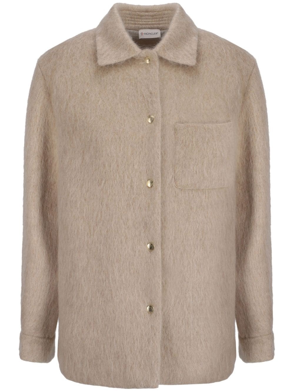 logo-applique shirt Highlights - Almond beige - Virgin wool-mohair blend - Brushed effect - Front press-stud fastening - Spread collar - Long sleeves - Applique logo - Chest patch pocket - Press-stud fastening cuffs - Straight hem Imported Composition Lining: Virgin Wool 77%, Mohair 17%, Polyamide 6% SIZE & FIT FittingInformation Designed to be unstructured, offering a loose fit throughout Made from a midweight non-stretch fabric Washing instructions Read Manufacturer Guidelines