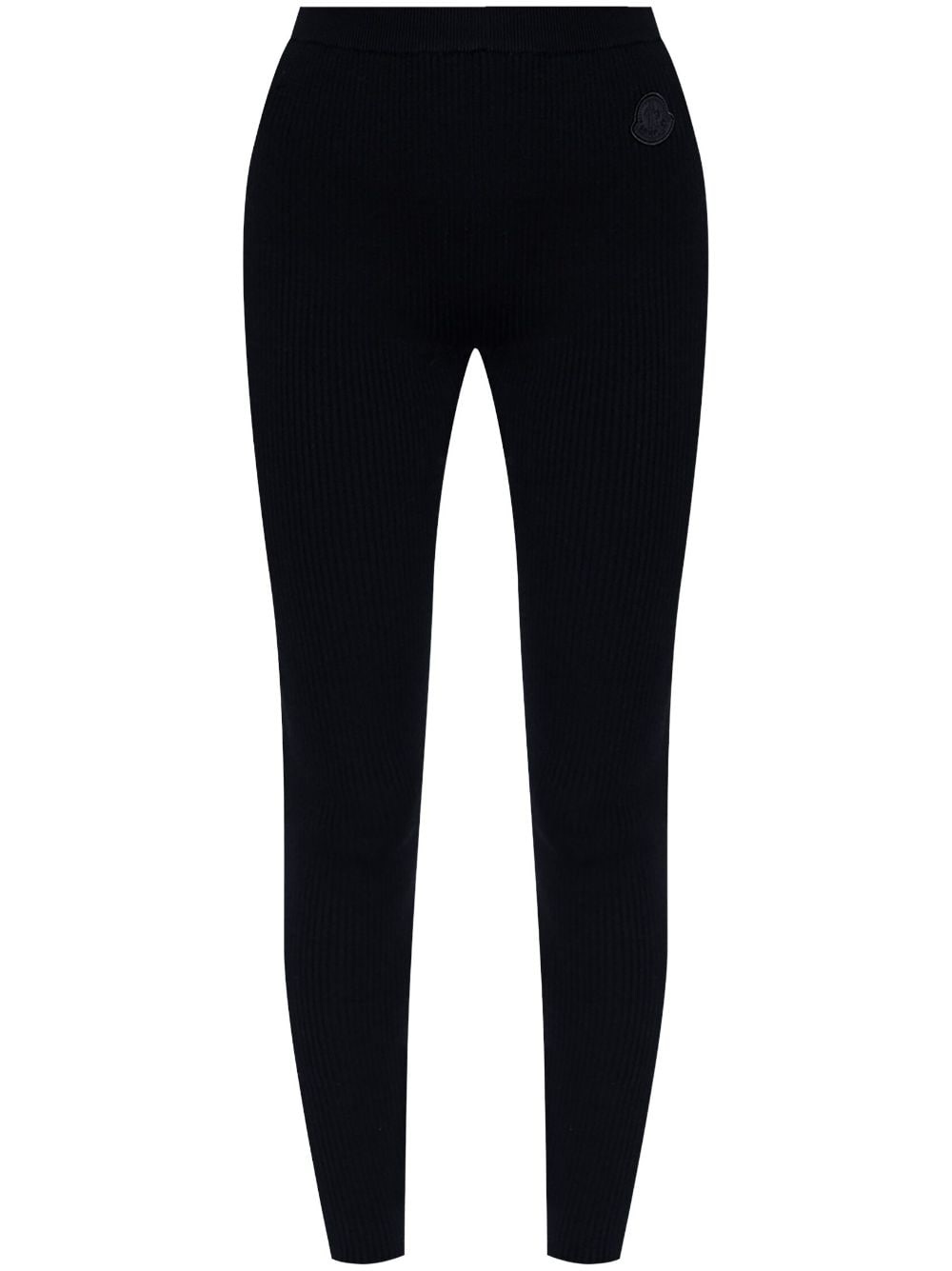 logo-applique leggings Highlights - Black - Stretch-design - Ribbed knit - Elasticated waistband - High-waisted - Applique logo - Skinny cut Imported Composition Acrylic 48%, Wool 43%, Polyamide 8%, Spandex/Elastane 1% Washing instructions Read Manufacturer Guidelines