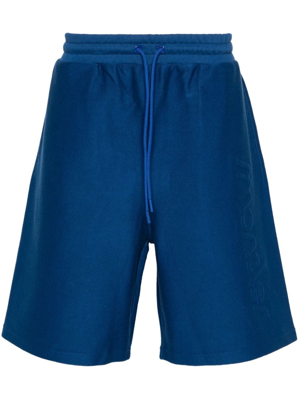 logo-embossed track shorts Highlights - Dark blue - Cotton - Terry-cloth effect - Two side inset pockets - Embossed logo to the front - Knee-length - Logo patch to the rear - Rear patch pocket - Elasticated drawstring waistband Imported Composition Cotton 100% SIZE & FIT Model measurements Height 6 ft 2 in(1.87 m) Bust/Chest 37.79 in(96 cm) Hips 37.79 in(96 cm) Waist 30.31 in(77 cm) FittingInformation Designed with a wide leg, offering a loose and roomy fit Adjust this piece’s waistband to your preference using the drawstring Made from a midweight non-stretch fabric, this piece offers minimal elasticity when worn This piece fits true to size – take your usual size