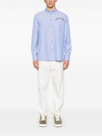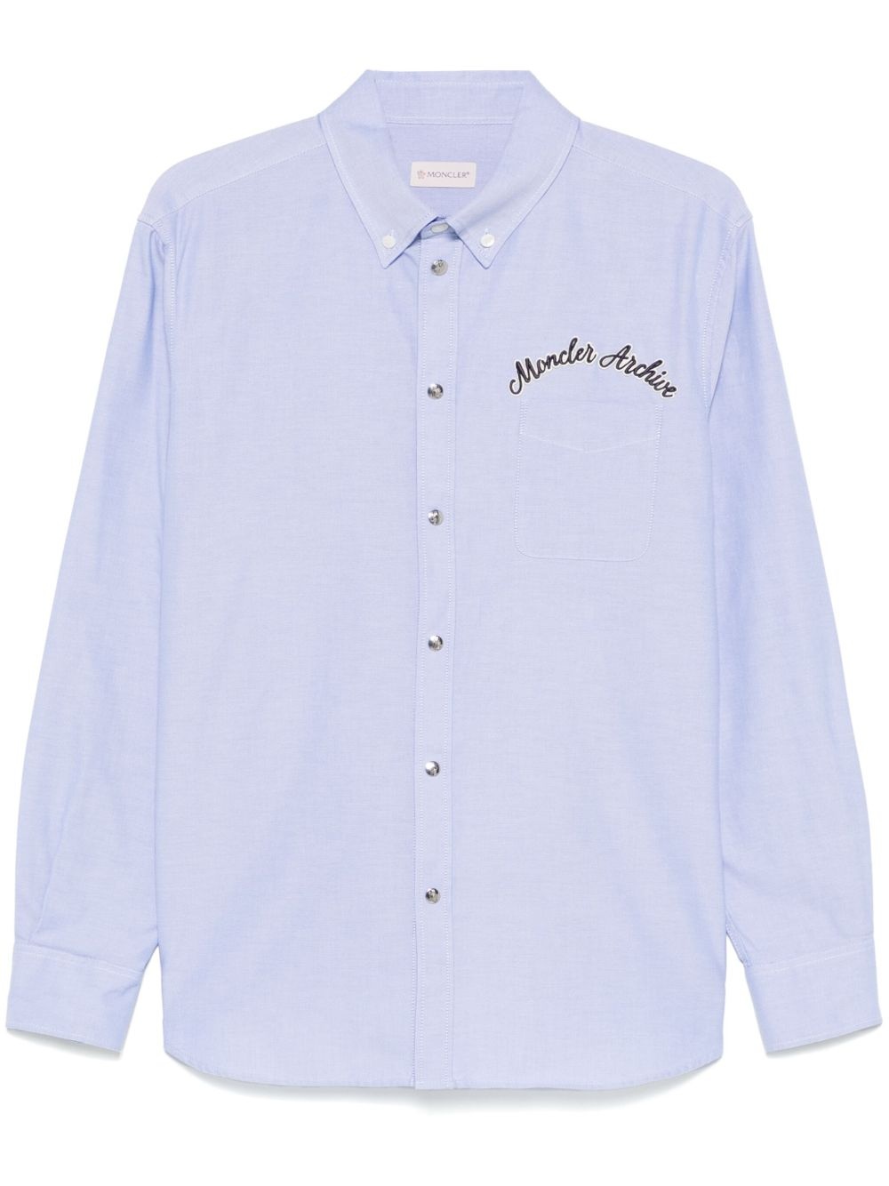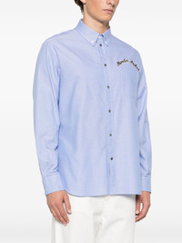 logo-embroidered shirt Highlights - Blue - Front press-stud fastening - Button-down collar - Press-stud fastening cuffs - Chest patch pocket Imported Composition Cotton 100% SIZE & FIT Model measurements Height 6 ft 2 in(1.87 m) Bust/Chest 38.97 in(99 cm) Hips 37.99 in(96.5 cm) Waist 29.52 in(75 cm) FittingInformation Designed for a regular fit, allowing for a comfortably loose fit throughout the body Made from a midweight non-stretch fabric