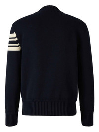 logo-embroidered striped-sleeve sweater Highlights - Navy blue - Logo embroidery - Ribbed hem - Crew neck - Long sleeves - Striped sleeve detail Made in Italy Composition Cotton 100% Washing instructions Read Manufacturer Guidelines