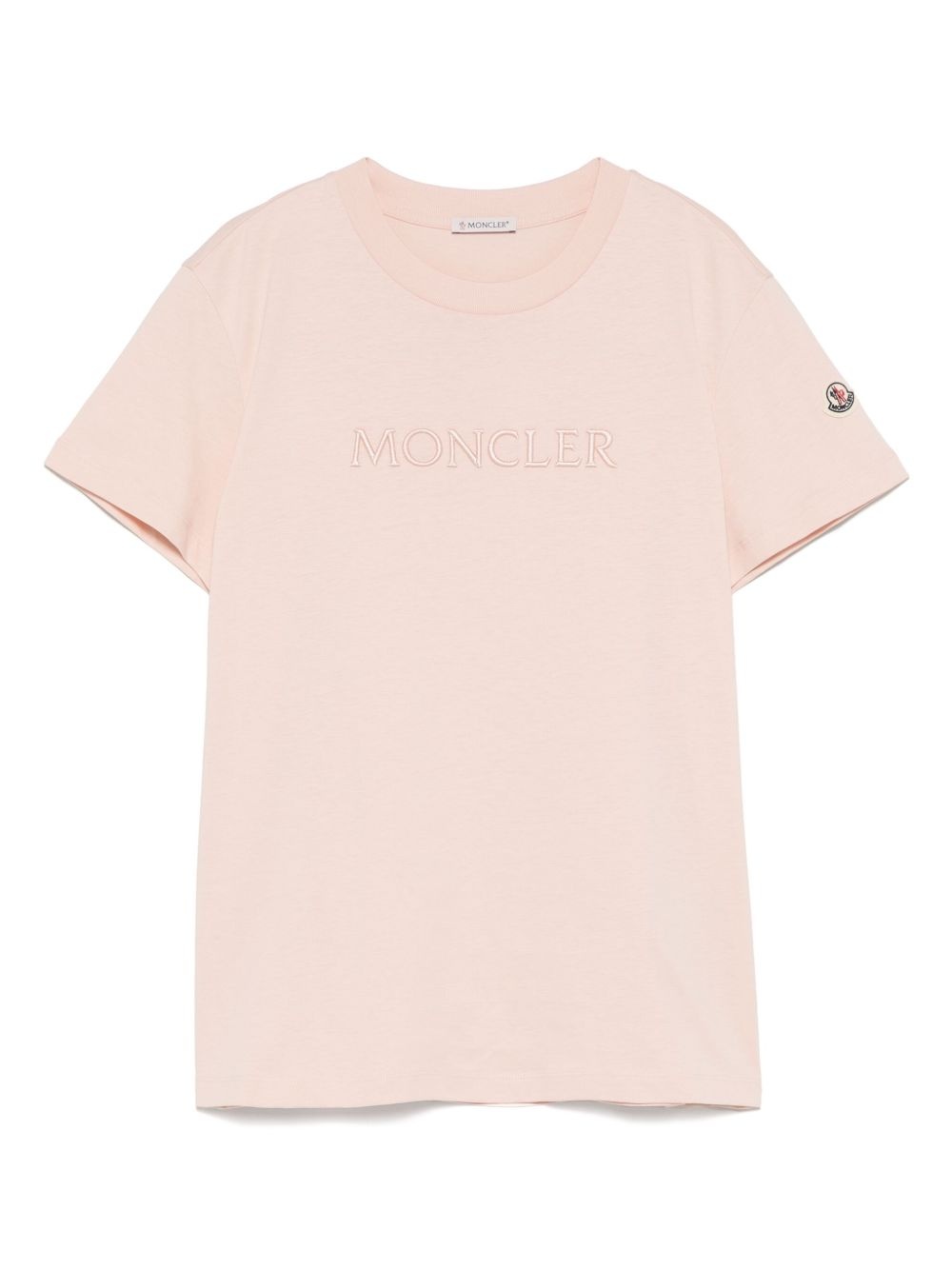 logo-embroidered T-shirt Highlights - Light pink - Crew neck - Short sleeves - Logo patch at the sleeve Imported Composition Cotton 100% SIZE & FIT Model measurements Height 5 ft 11 in(1.8 m) Bust/Chest 31.49 in(80 cm) Hips 36.61 in(93 cm) Waist 24.4 in(62 cm) FittingInformation Designed for a slim fit that sits just away from the body offering a close yet comfortable fit Made from a midweight non-stretch fabric, this piece offers minimal elasticity when worn Washing instructions Machine Wash