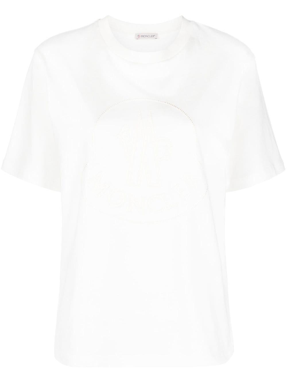 logo-embroidered T-shirt This cotton T-shirt is an ode to Moncler’s heritage. It’s embroidered with a tonal iteration of the signature abstract cockerel logo - also the national symbol of France, the brand adopted the emblem after it became an official supplier to the French Olympic ski team in the 1960s. Made in United Kingdom Composition Viscose 100%, Cotton 100% SIZE & FIT Model measurements Height 5 ft 11 in(1.8 m) Bust/Chest 31.49 in(80 cm) Hips 35.43 in(90 cm) Waist 25.19 in(64 cm) Washing instructions Machine Wash