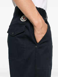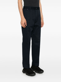 logo-patch gabardine tapered trousers Highlights - Navy blue - Cotton blend - Gabardine weave - Logo patch to the rear - Belt loops - Front press-stud and zip fastening - Rear elasticated waistband - Tapered leg - Two side slit pockets - Two rear flap pockets - Straight hem Made in Italy Composition Cotton 98%, Elastane 2% SIZE & FIT Model measurements Height 6 ft 2 in(1.87 m) Bust/Chest 36.41 in(92.5 cm) Hips 35.43 in(90 cm) Waist 29.52 in(75 cm) FittingInformation Designed for a tapered leg, offering a loose unrestricted fit over the leg with a closer fit towards the ankle The partially elasticated waistband offers increased movement and comfort at the waist Made from a midweight stretch fabric, this piece offers elasticity and flexibility when worn This piece fits true to size – take your usual size
