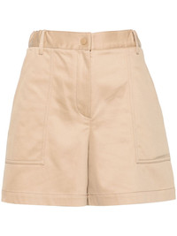 logo-patch garbadine shorts Highlights - Light brown - Stretch-cotton - Logo patch to the rear - High-waisted - Belt loops - Concealed fly and button fastening - Two side patch pockets - Two rear flap pockets Imported Composition Cotton 97%, Elastane 3% SIZE & FIT Model measurements Height 5 ft 11 in(1.8 m) Bust/Chest 33.07 in(84 cm) Hips 37 in(94 cm) Waist 25.59 in(65 cm) Measurement FRONT RISE 11.41 in(29 cm) HIPS 37 in(94 cm) WAIST 27.55 in(70 cm) FittingInformation Designed for a relaxed, roomy fit The partially elasticated waistband offers increased movement and comfort at the waist Made from a midweight stretch fabric, this piece offers elasticity and flexibility when worn This piece fits true to size – take your usual size Washing instructions Hand Wash