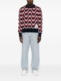 logo-patch patterned wool jumper Highlights - Red/white/blue - Wool - Logo patch to the front - Patterned intarsia knit - Crew neck - Drop shoulder - Long sleeves - Ribbed trim - Straight hem Imported Composition Wool 100% SIZE & FIT Model measurements Height 6 ft 0 in(1.84 m) Bust/Chest 35.82 in(91 cm) Hips 37 in(94 cm) Waist 28.34 in(72 cm) FittingInformation Designed for a relaxed fit, this piece allows for comfort and movement when worn Made with a midweight knit, this piece offers some stretch This piece fits true to size – take your usual size Washing instructions Dry Clean Only
