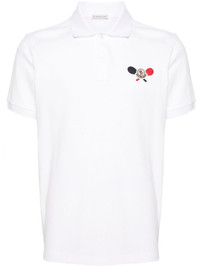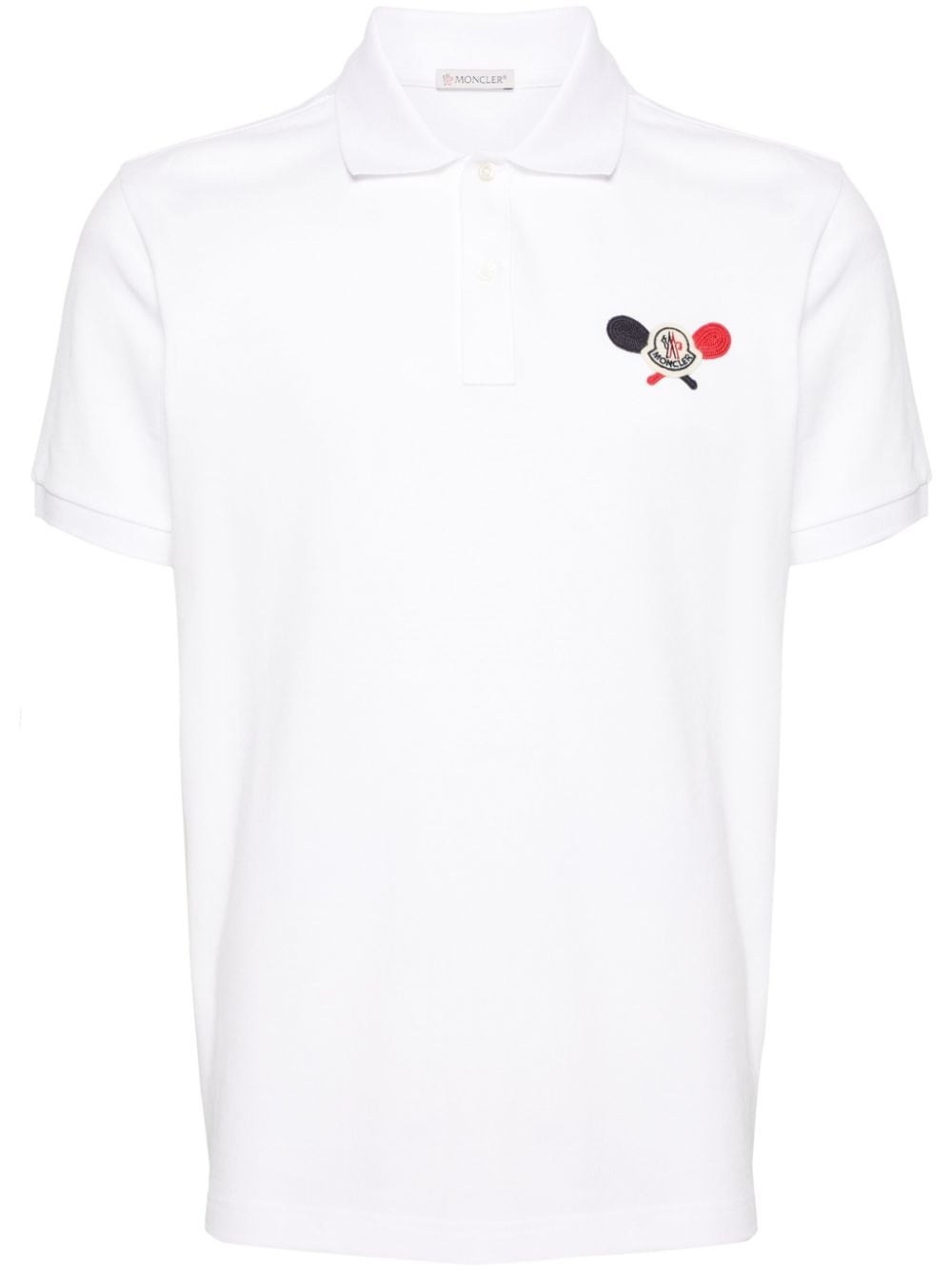 logo-patch pique-weave polo shirt Inspired by the tennis world, this polo shirt features the signature Moncler logo at the chest, with two rackets behind it. It is crafted from white cotton pique to a short-sleeve silhouette. Highlights - White - Cotton - Pique weave - Logo patch at the chest - Polo collar - Front button placket - Short sleeves - Short side slits - Straight hem Imported Composition Cotton 100% SIZE & FIT Model measurements Height 6 ft 2 in(1.88 m) Bust/Chest 36.61 in(93 cm) Hips 35.82 in(91 cm) Waist 27.95 in(71 cm) Measurement CHEST 44.88 in(114 cm) SLEEVE LENGTH 9.05 in(23 cm) Washing instructions Machine Wash