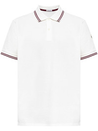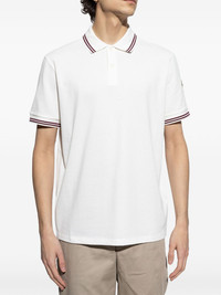 logo-patch polo shirt Highlights - White - Front button placket - Polo collar - Short sleeves - Stripe trim Imported Composition Cotton 100% SIZE & FIT FittingInformation Designed for a relaxed fit, this polo shirt offers comfort and movement Made from a midweight non-stretch fabric, this piece offers minimal elasticity when worn