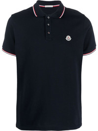 logo patch polo shirt Highlights - Navy blue - Cotton - Pique weave - Logo patch at the chest - Stripe trim - Polo collar - Short front button fastening - Short sleeves - Straight hem Imported Composition Cotton 100% SIZE & FIT Model measurements Height 6 ft 2 in(1.87 m) Bust/Chest 36.41 in(92.5 cm) Hips 37 in(94 cm) Waist 29.52 in(75 cm) Measurement CHEST 38.58 in(98 cm) SLEEVE LENGTH 7.08 in(18 cm) Shoulder Width 14.96 in(38 cm) LENGTH 25.19 in(64 cm) FittingInformation This piece fits true to size. We recommend you get your regular size Cut for a slim fit Made with a mid-weight fabric Washing instructions Machine Wash