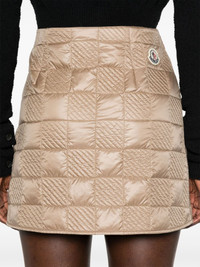 logo-patch quilted miniskirt Highlights - Sand brown - Tonal stitching - Quilted - Logo patch to the side - Concealed side hook and zip fastening - Straight hem - Thigh-length Imported Composition Lining: Polyamide 100%, Polyester 100% Outer: Polyamide 100%, Cotton 77%, Polyester 23% SIZE & FIT Model measurements Height 5 ft 10 in(1.77 m) Bust/Chest 32.28 in(82 cm) Hips 35.03 in(89 cm) Waist 25.19 in(64 cm) FittingInformation This mini-length skirt is intended to be worn high on the waist Made from a midweight non-stretch fabric This piece fits true to size – take your usual size