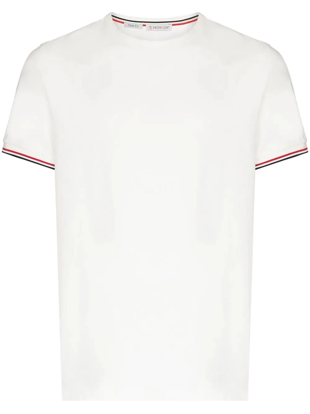 logo-patch short-sleeve T-shirt The most important element of any wardrobe is the basics. And this T-shirt from Moncler is sure to become a crowning jewel in your collection. Bow down to wardrobe royalty. Imported Composition Cotton 92%, Elastane 8% SIZE & FIT Model measurements Height 6 ft 2 in(1.87 m) Bust/Chest 36.41 in(92.5 cm) Hips 35.43 in(90 cm) Waist 29.52 in(75 cm) Measurement CHEST 33.07 in(84 cm) Shoulder Width 14.56 in(37 cm) FittingInformation This piece fits true to size. We recommend you get your regular size Cut for a relaxed fit Made with a mid-weight stretch fabric Washing instructions Machine Wash