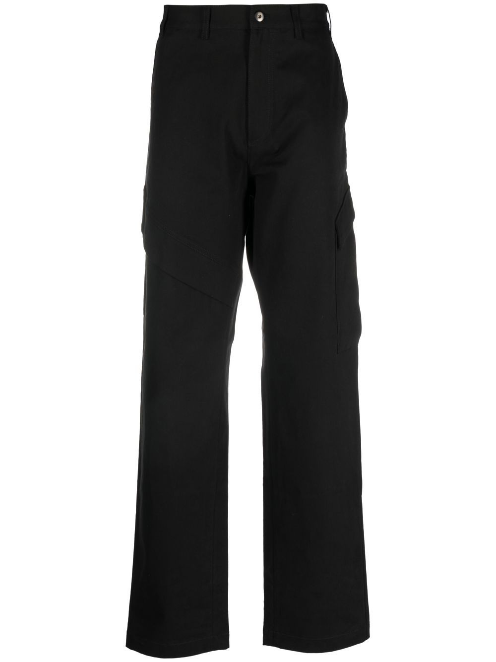 logo-patch straight-leg trousers black cotton blend front button fastening two diagonal pockets to the sides two side flap pockets straight leg Made in Italy Composition Cotton 98%, Elastane 2% SIZE & FIT Model measurements Height 6 ft 1 in(1.85 m) Bust/Chest 35.82 in(91 cm) Hips 37.79 in(96 cm) Waist 29.13 in(74 cm) FittingInformation This piece fits true to size. We recommend you get your regular size Regular fit Made with a mid-weight stretch fabric Washing instructions Machine Wash