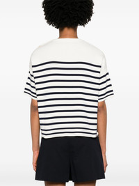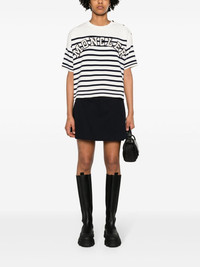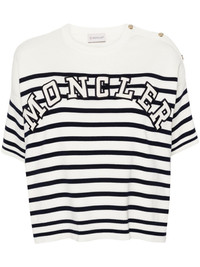 striped cotton cardigan Highlights - Ecru/navy blue - Cotton - Fine knit - Horizontal stripe pattern - Ribbed trim - Logo patch lettering to the front - Embossed gold-tone buttons - Crew neck - Drop shoulder - Short sleeves - Short side slits - Straight hem - Unlined - Press-stud fastening at the shoulder Imported Composition Lining: Cotton 100%, Polyester 100% Outer: Cotton 100% SIZE & FIT Model measurements Height 5 ft 10 in(1.77 m) Bust/Chest 33.07 in(84 cm) Hips 37 in(94 cm) Waist 24.8 in(63 cm) FittingInformation Designed for a relaxed fit, this piece allows for comfort and movement when worn Made with a midweight knit, this piece offers some stretch This piece fits true to size – take your usual size